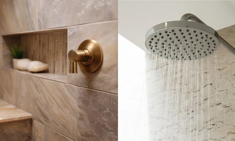 Nichos embutidos bem posicionados facilitam o acesso a produtos sem comprometer a estética do ambiente. Duchas duplas podem ser consideradas em projetos maiores, especialmente em suítes compartilhadas, oferecendo praticidade e conforto simultaneamente.