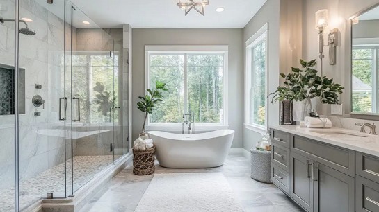Plantas naturais, especialmente espécies adaptadas à umidade, complementam o espaço trazendo vida e reforçando a conexão com o natural. No estilo spa, o design evita contrastes agressivos e excesso de informação, criando um ambiente silencioso e acolhedor.