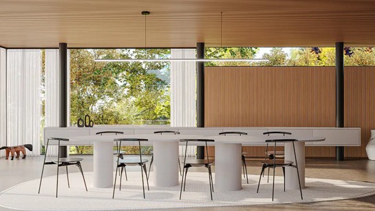 • Tampos orgânicos que ampliam a área útil da mesa sem criar volumes rígidos